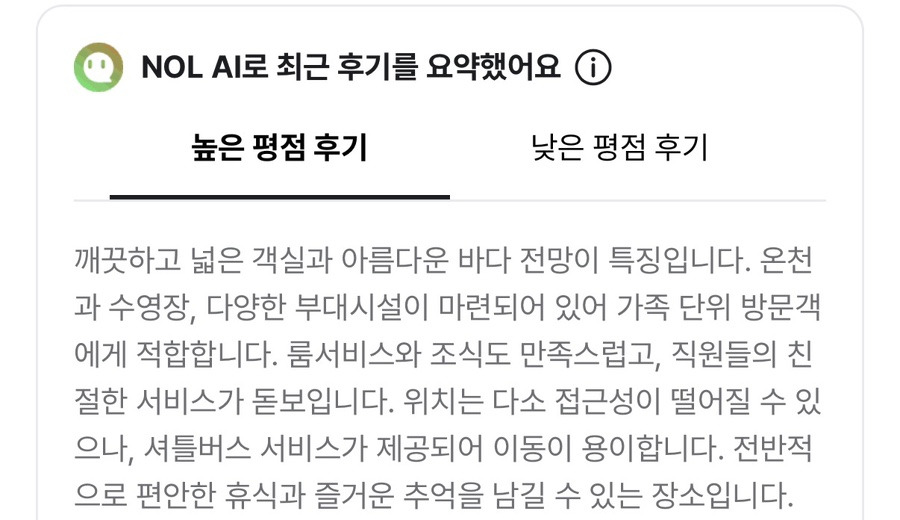 바다 전망 만족도 높다