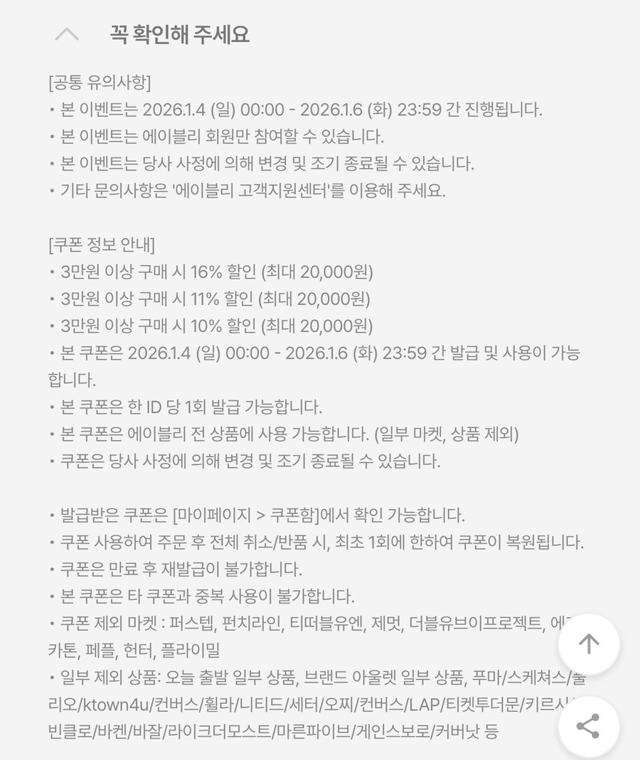 | 에이블리 리셋찬스 시작 | 신년 옷장 정리 25% 쿠폰 받는 법 정리 (0) | 2026.01.04 |