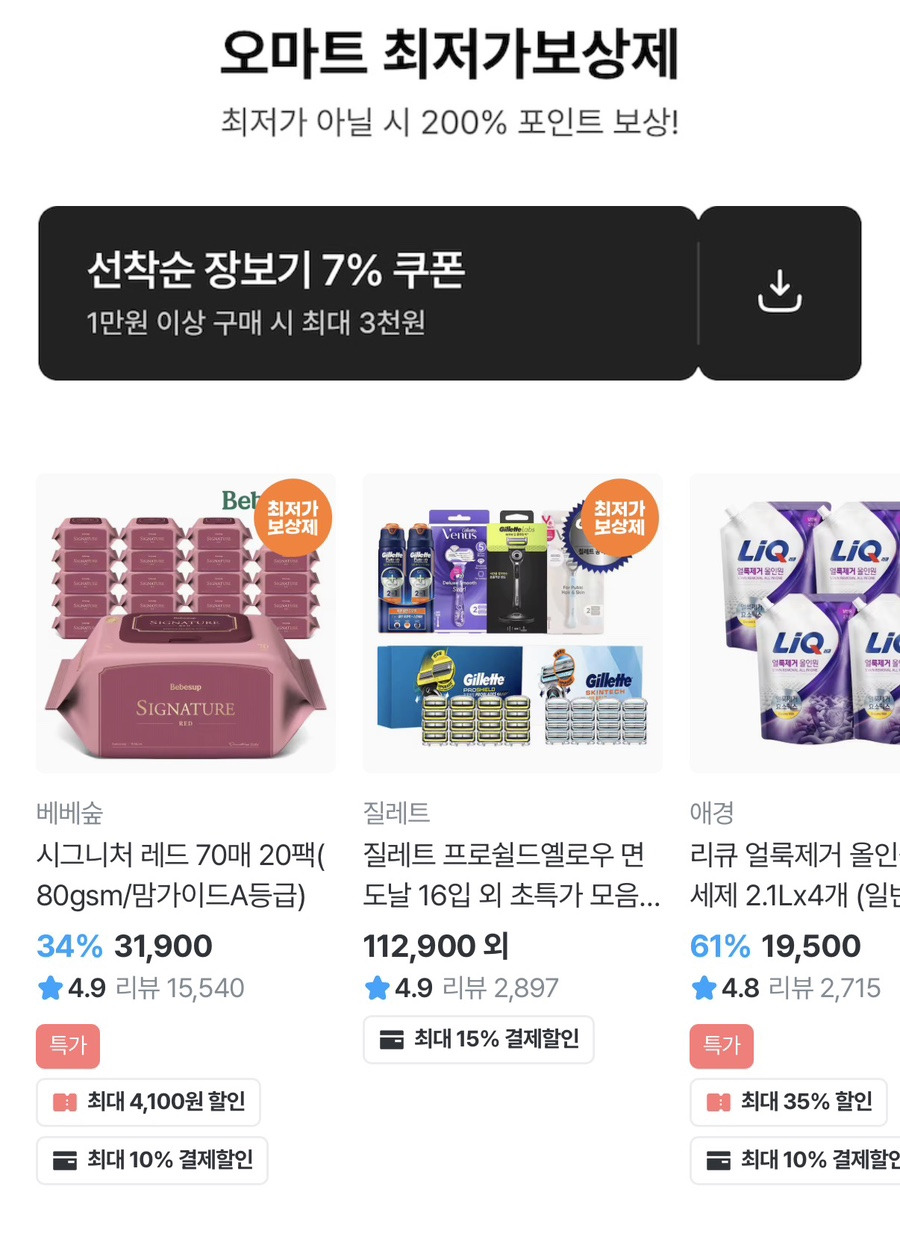 오마트 최저가보상제까지 같이 적용되는 구조예요