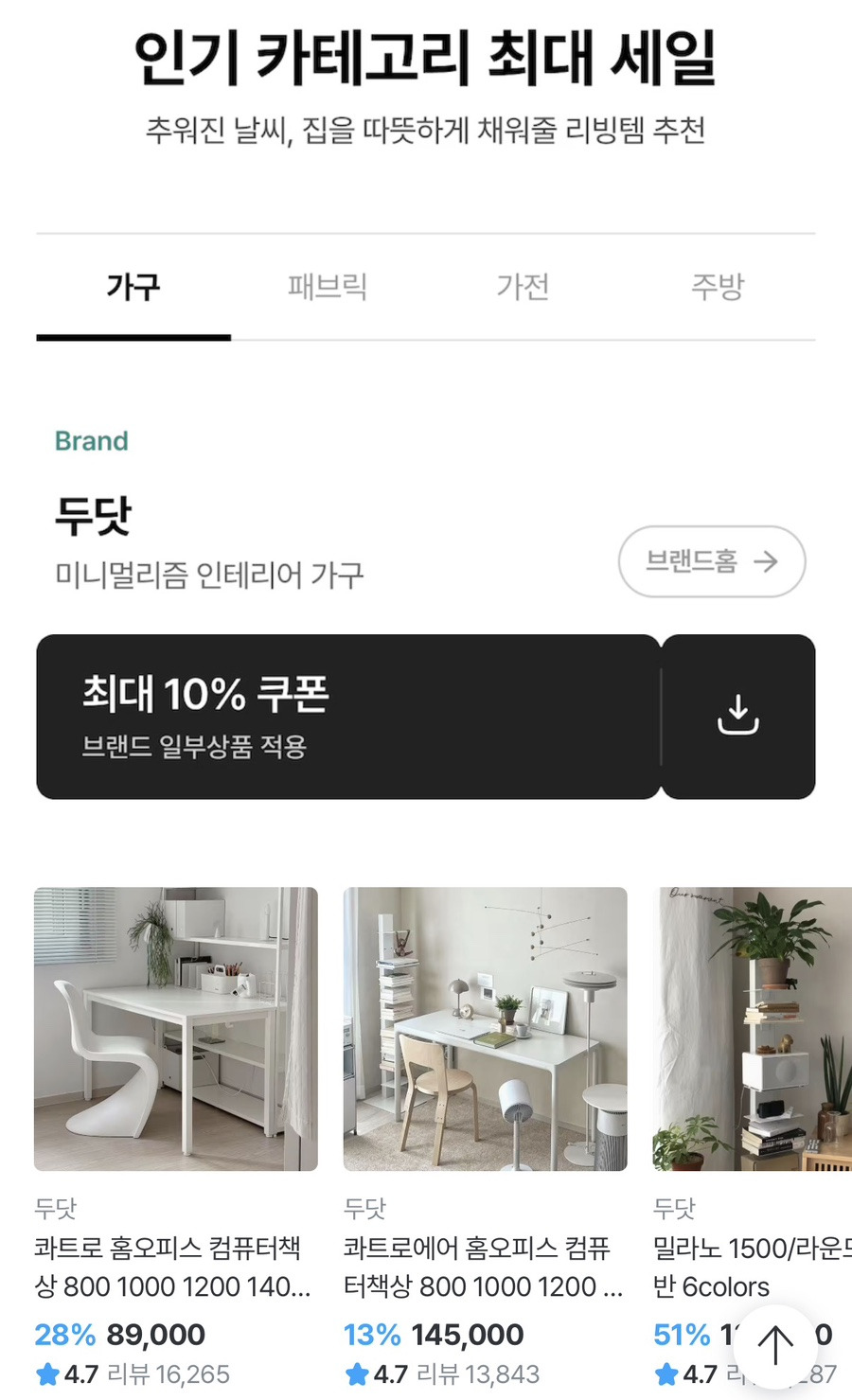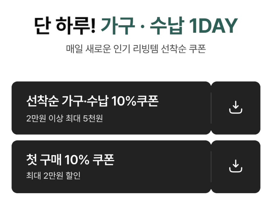 1. 가구·수납 선착순 10% 쿠폰
