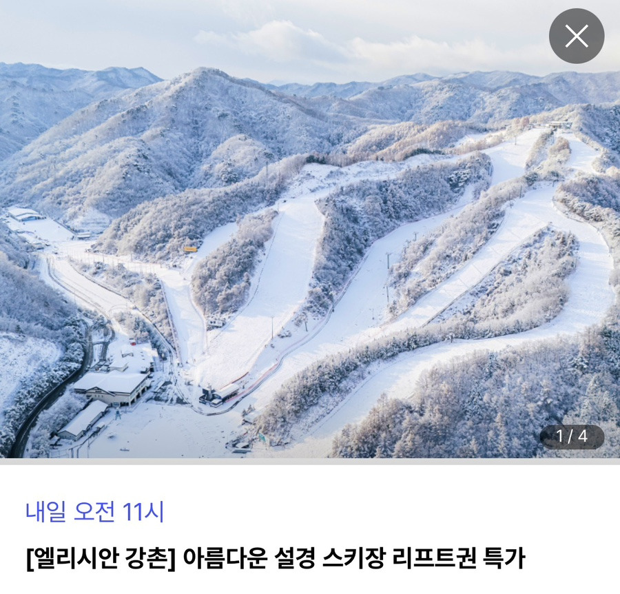 [엘리시안 강촌] 아름다운 설경 스키장 리프트권 특가 1월 6일 오전 11시