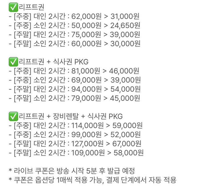 이번 엘리시안 강촌 리프트권 라이브 핵심 정리