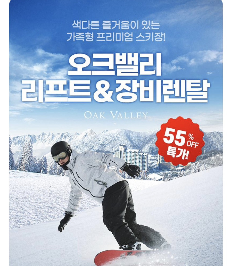 오크밸리 리프트 & 장비렌탈 특가 확인하기