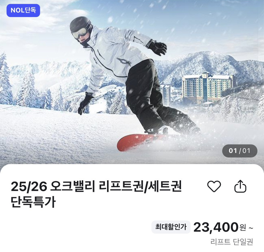 이번 오크밸리 리프트권 단독 특가는