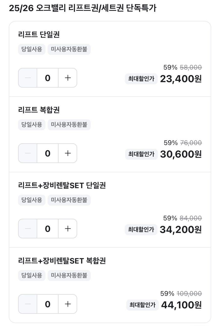 이번 오크밸리 리프트권, 조건부터 깔끔해요