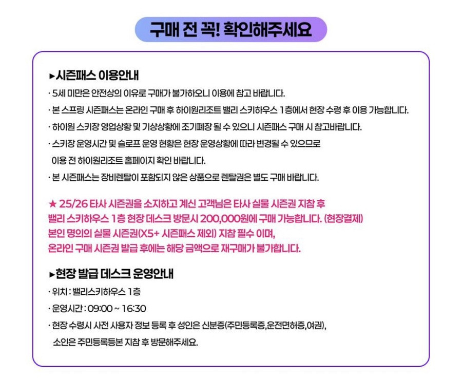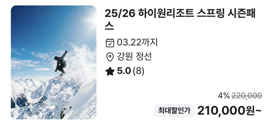25/26 하이원 스프링 시즌패스 가격부터 정리해보면