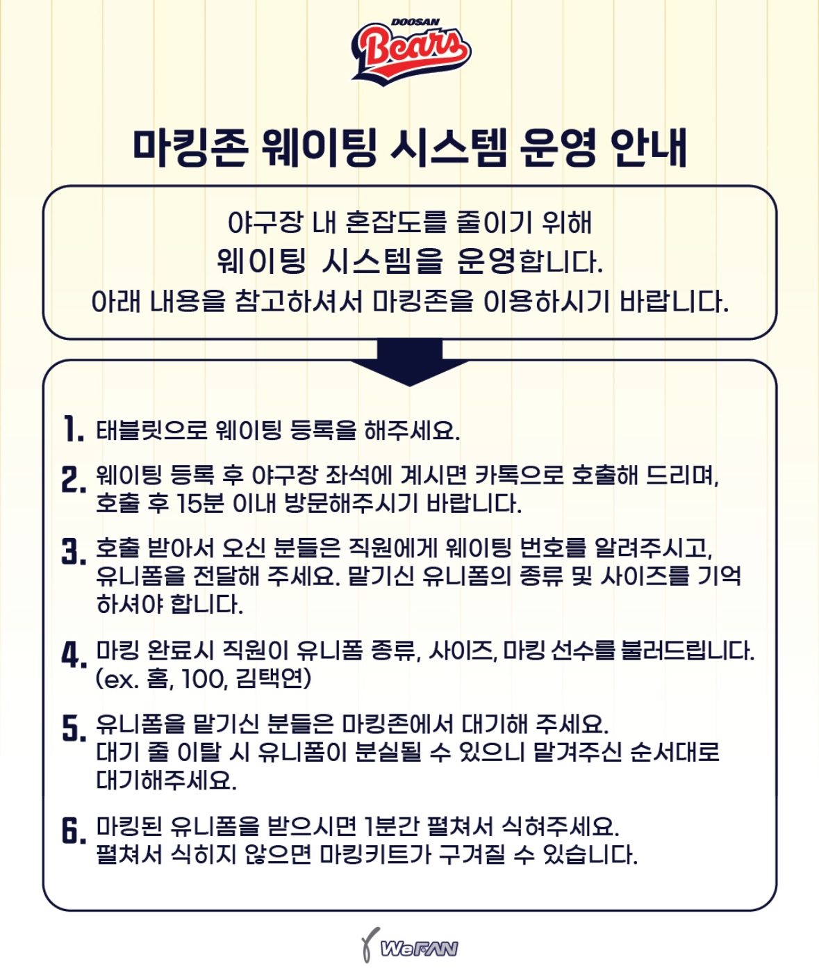 노마킹 유니폼 지참, 웨이팅 등록, 마킹 시간대 등