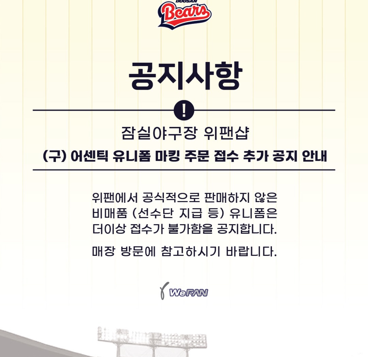 (구) 어센틱 유니폼 마킹 접수 불가 공지가 붙었어요