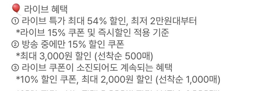 1. 라이브 15% 쿠폰 즉시 적용