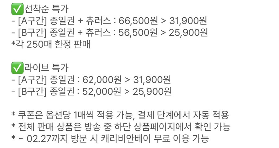 ~2월 27일까지 캐리비안베이 무료 이용