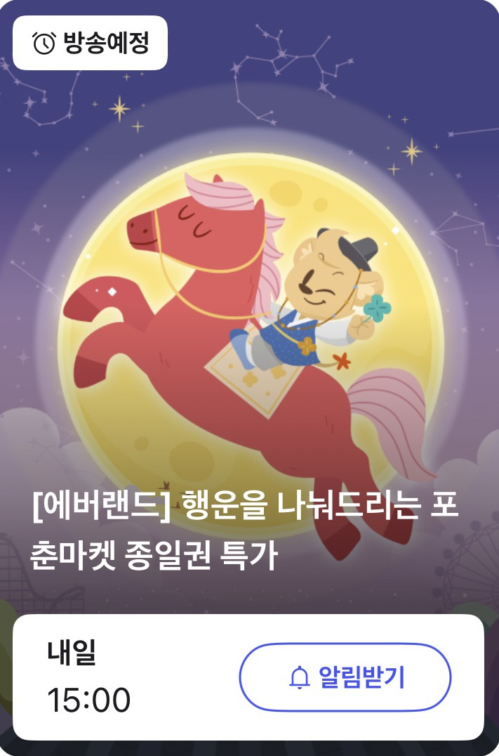 [에버랜드] 행운을 나눠드리는 포춘마켓 종일권 특가 2월 12일 오후 3시