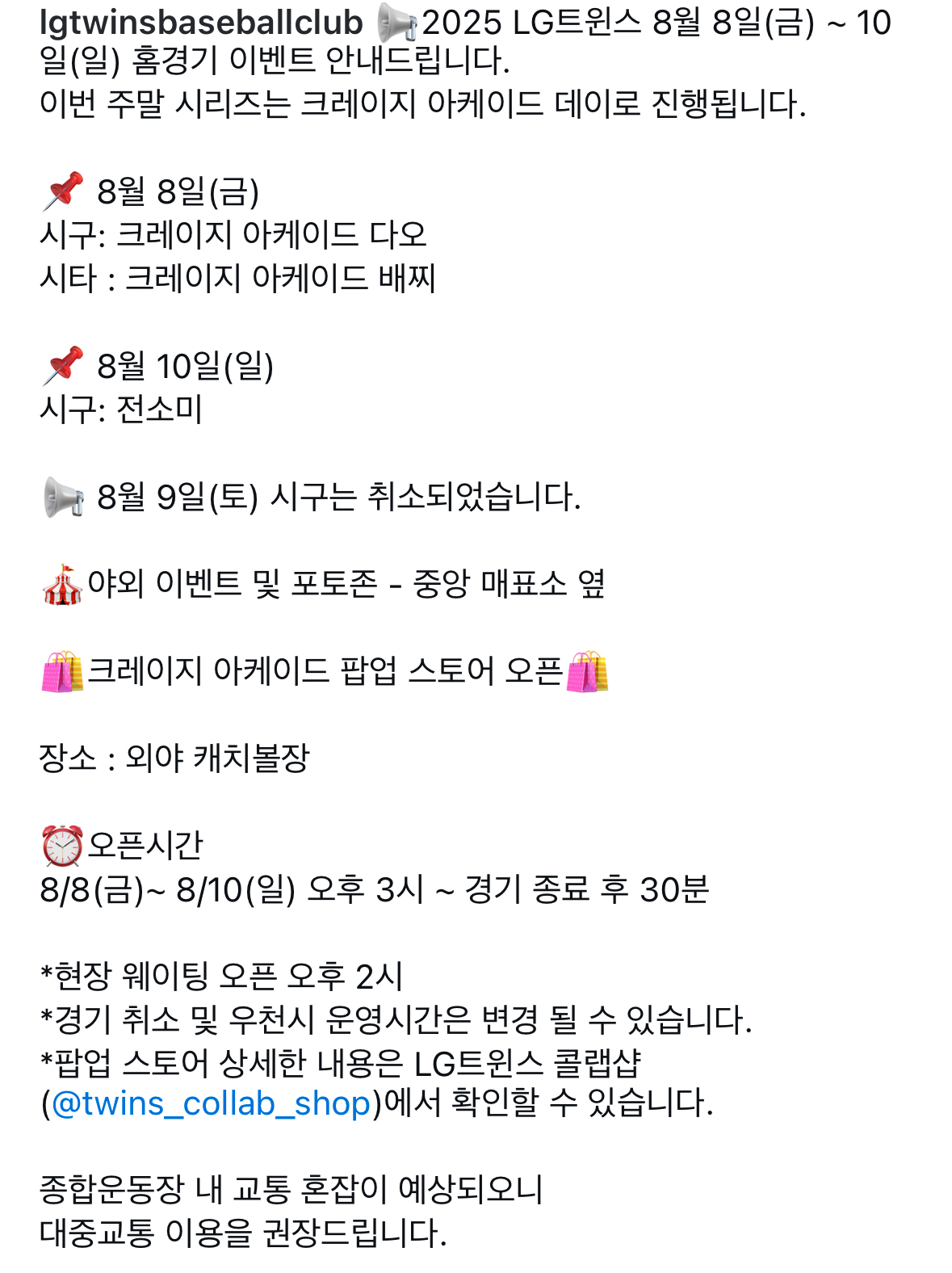 | LG트윈스 X 크레이지아케이드 콜라보 굿즈 출시 | 유니폼, 키링 등 종류, 가격, 출시일 (4) | 2025.08.06 |