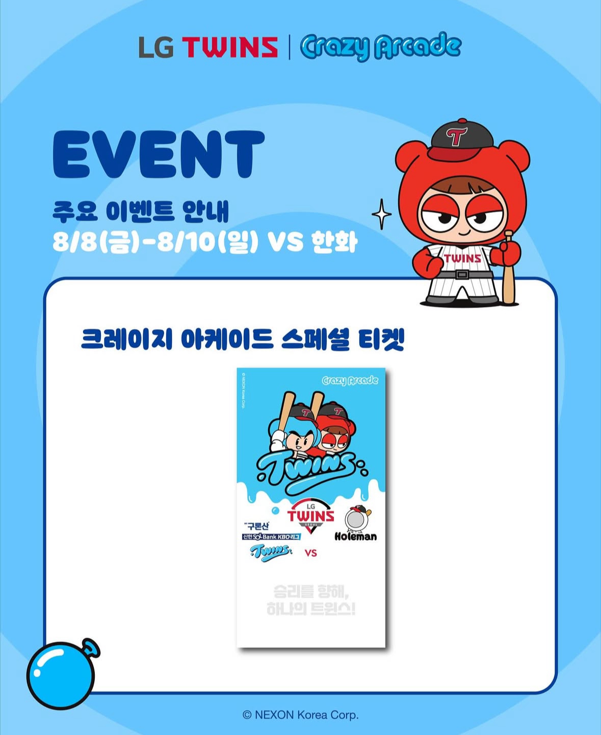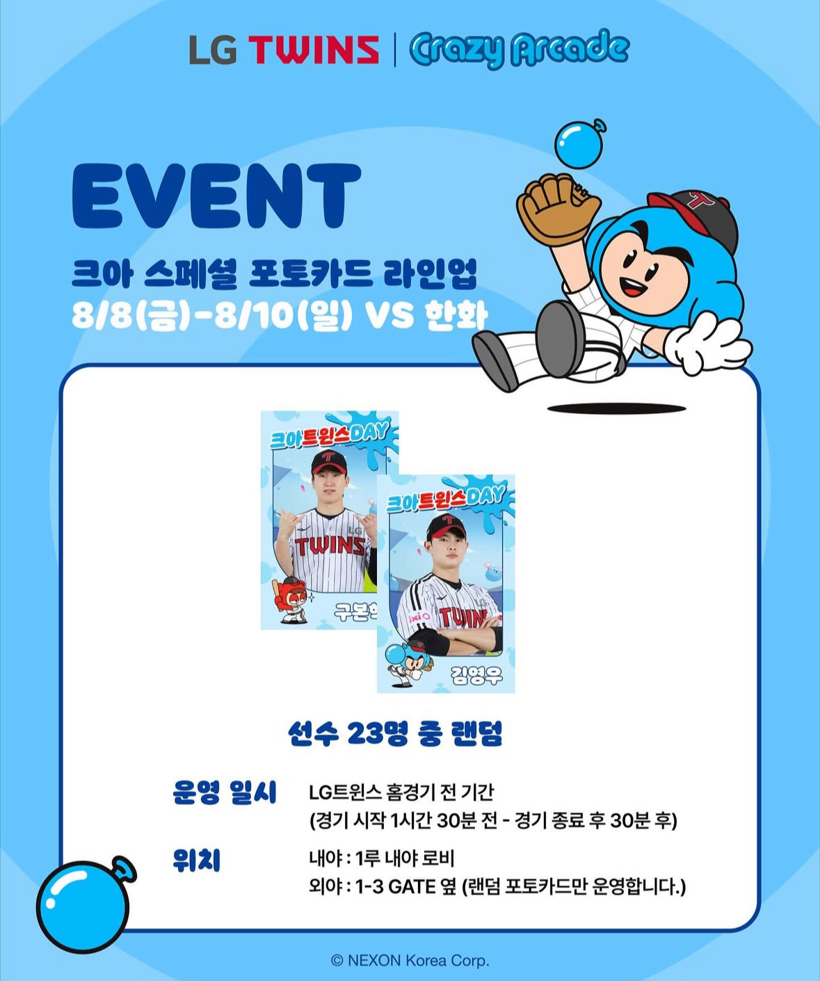 8/8(금): 시구 - 크레이지 아케이드 다오 / 시타 - 배찌