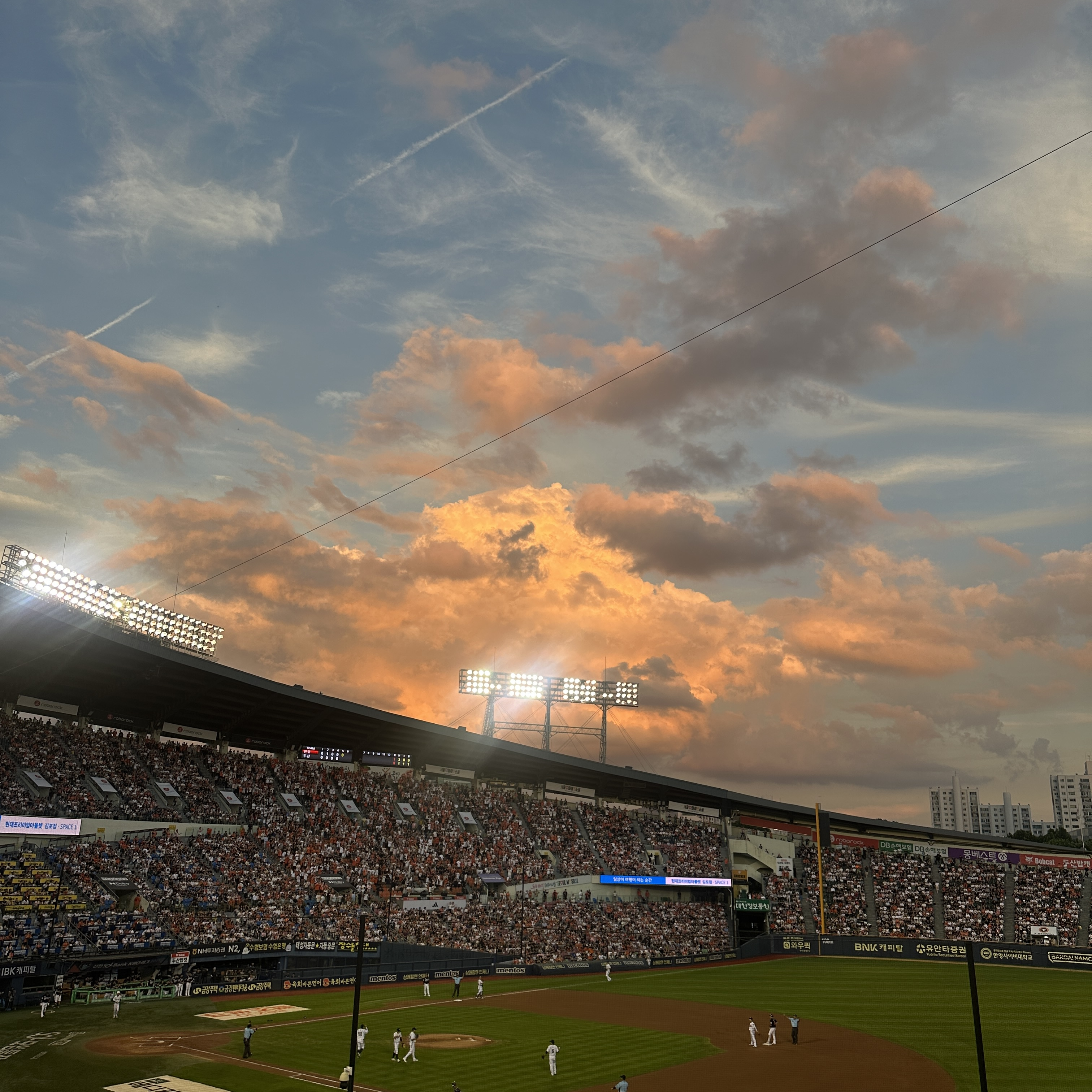 야구장 조명이랑 어우러지면서 완전 인생샷 타임!