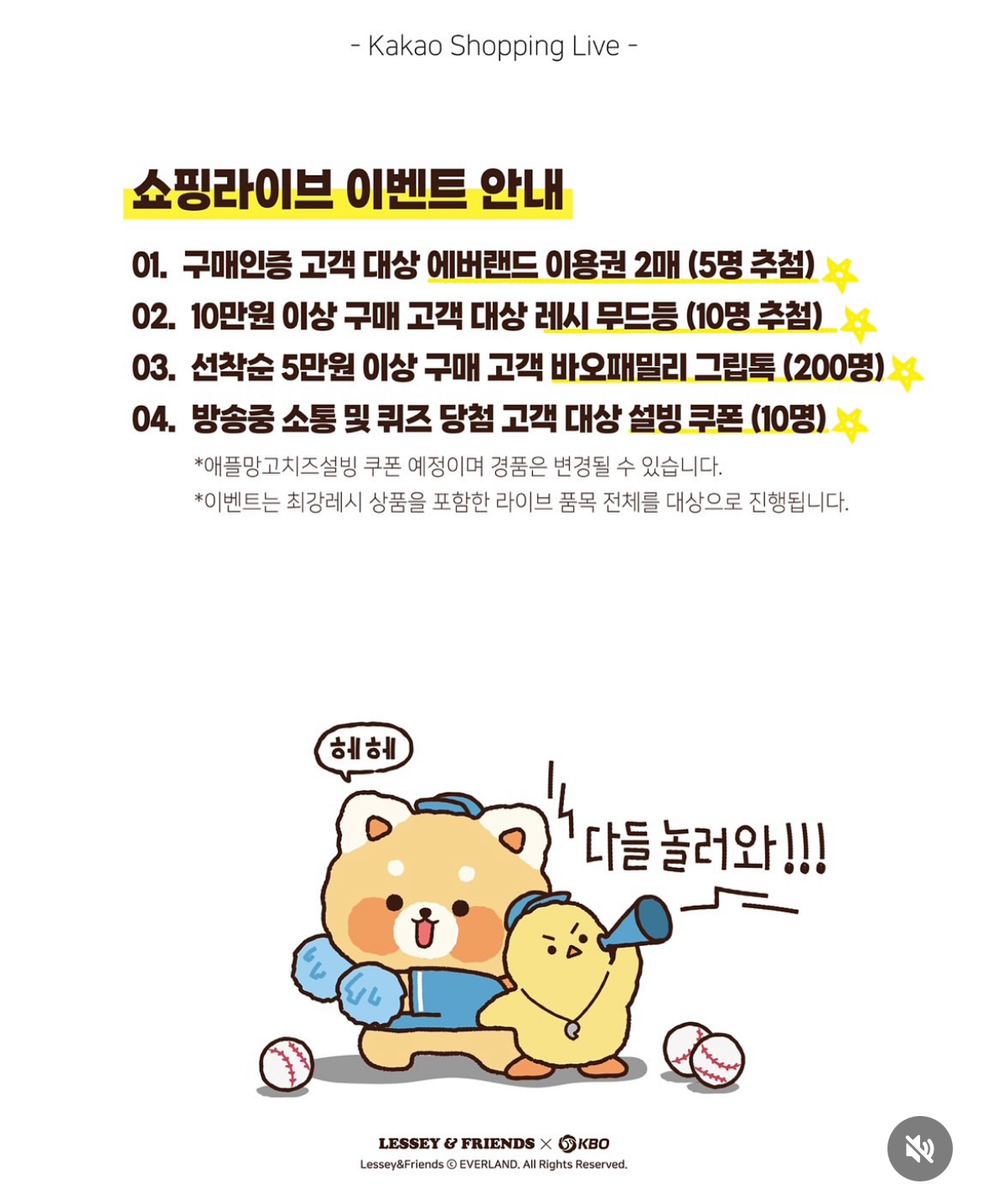 방송 중 소통·퀴즈 당첨 고객 → 설빙 쿠폰 (10명)