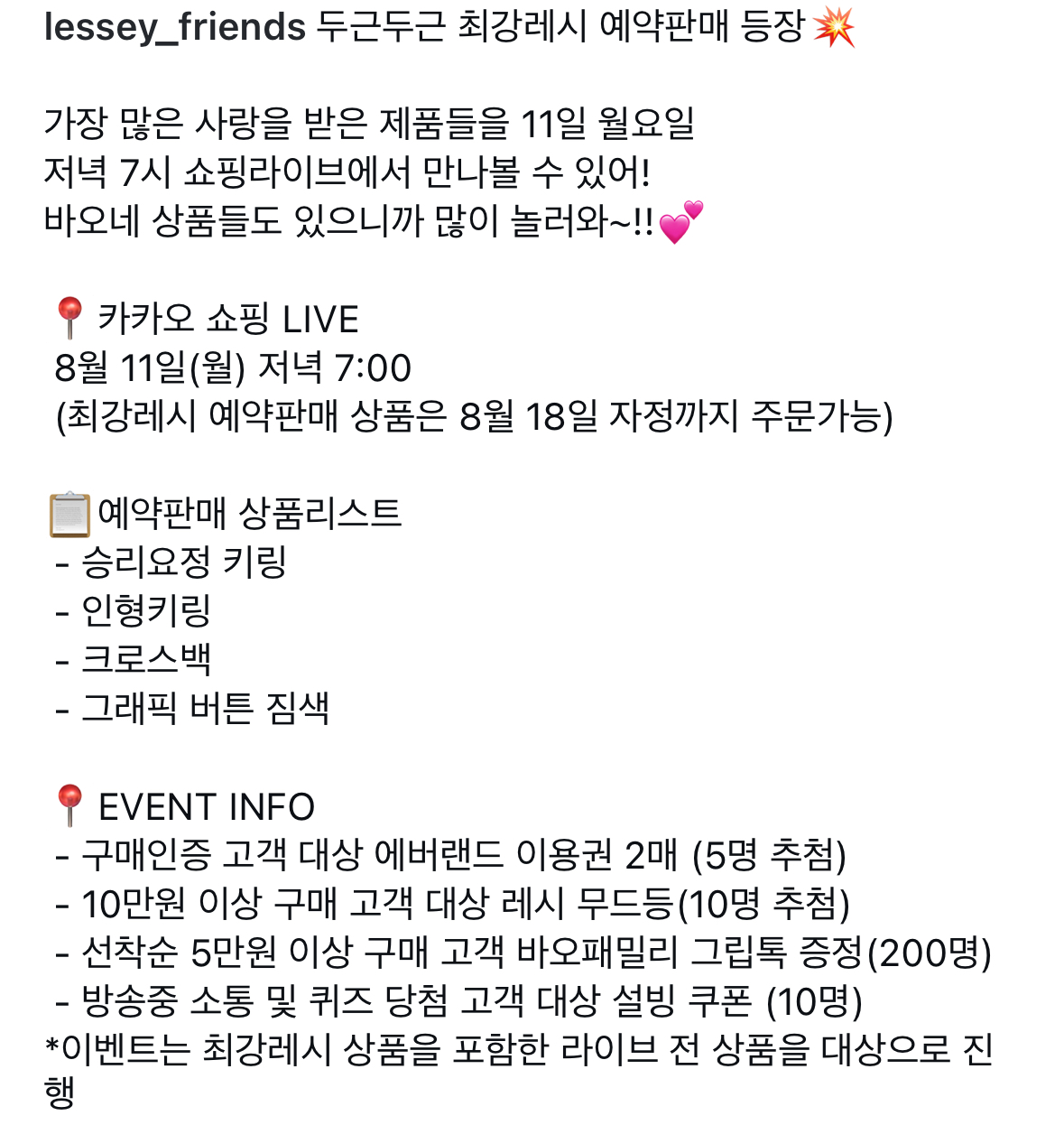 8월 11일 저녁 7시 카카오 쇼핑라이브에서 시작되는