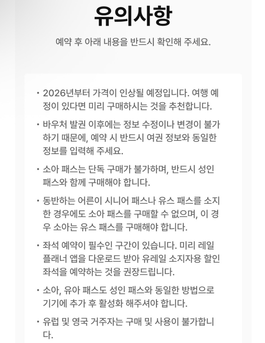 일부 열차는 좌석 예약 필수 → 앱에서 꼭 확인
