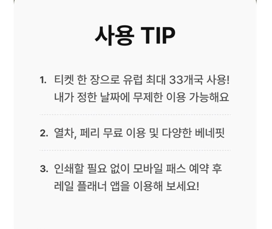 유레일은 최대 33개국을 한 장으로 다 갈 수 있다는 점