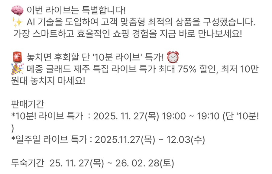2025.11.27(목) 19:00 ~ 19:10 (단 10분)