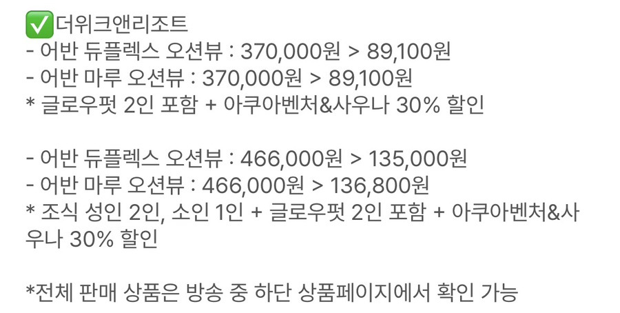 더위크앤리조트 라이브 특가 정리
