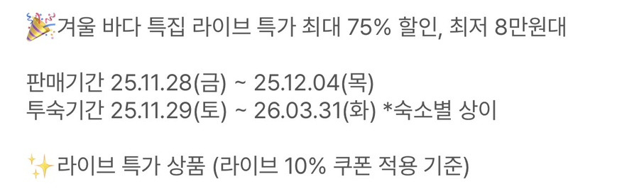 겨울 바다 특집 라이브 특가 확인하기