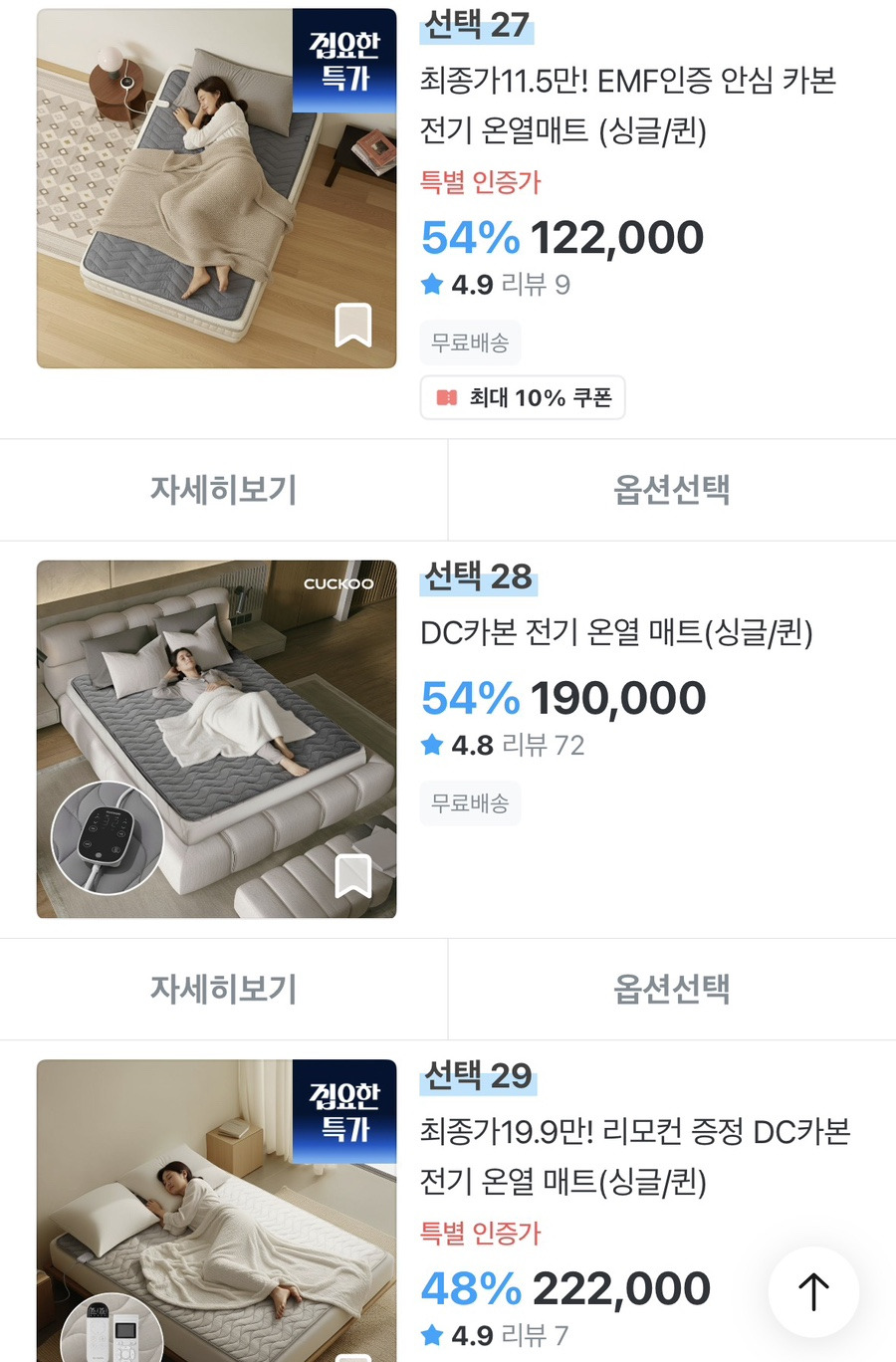 DC카본 온열매트는 19만~22만원대라