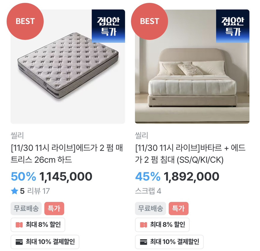 씰리 베스트 매트리스·침대 특가 구성 한눈정리