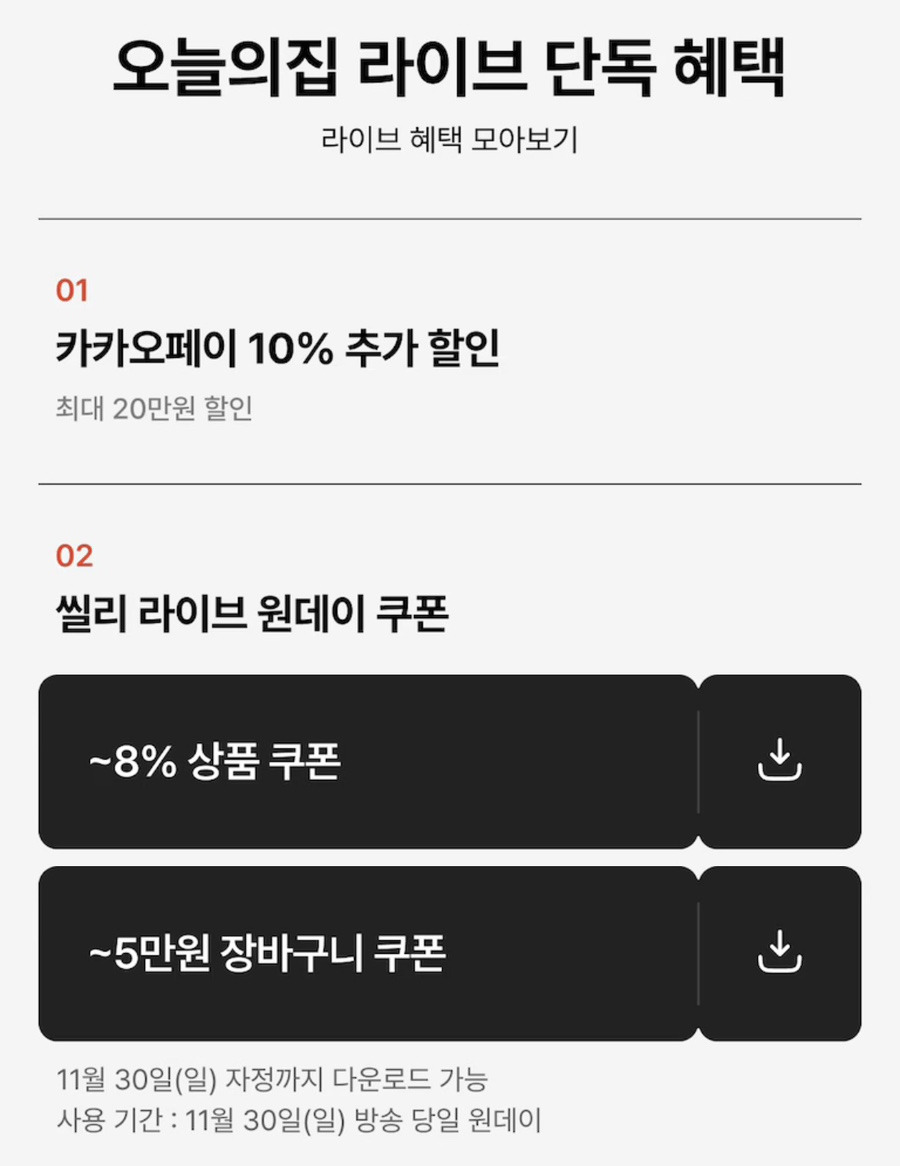 오늘의집 라이브 단독 혜택: 추가 할인부터 사은품까지